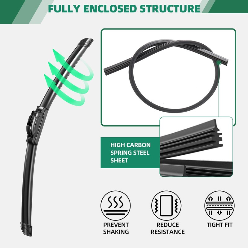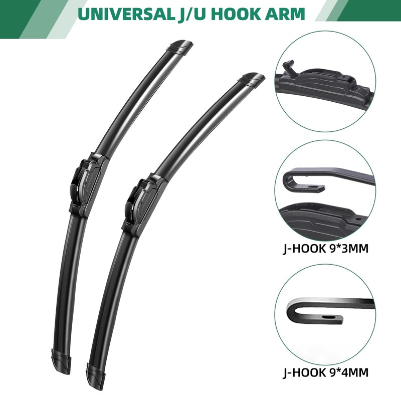 - 【Interface Type】: Suitable for J/U hook (9*3 and 9*4) wiper arm, no adapter needed, Easy installation, perfect fit,Replacement can be achieved in a few minutes. Check your garage for the correct wiper blade size.