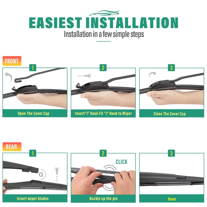 - [Super Clear Wipers]: High-quality rubber blade ensures efficient and streak-free wiping.