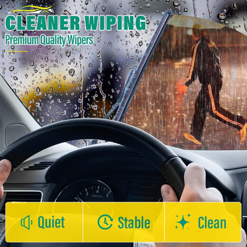 - [More Quiet wipers]: Precision engineering for optimal contact and even pressure distribution ,aerodynamic design reduces wind lift and noise.