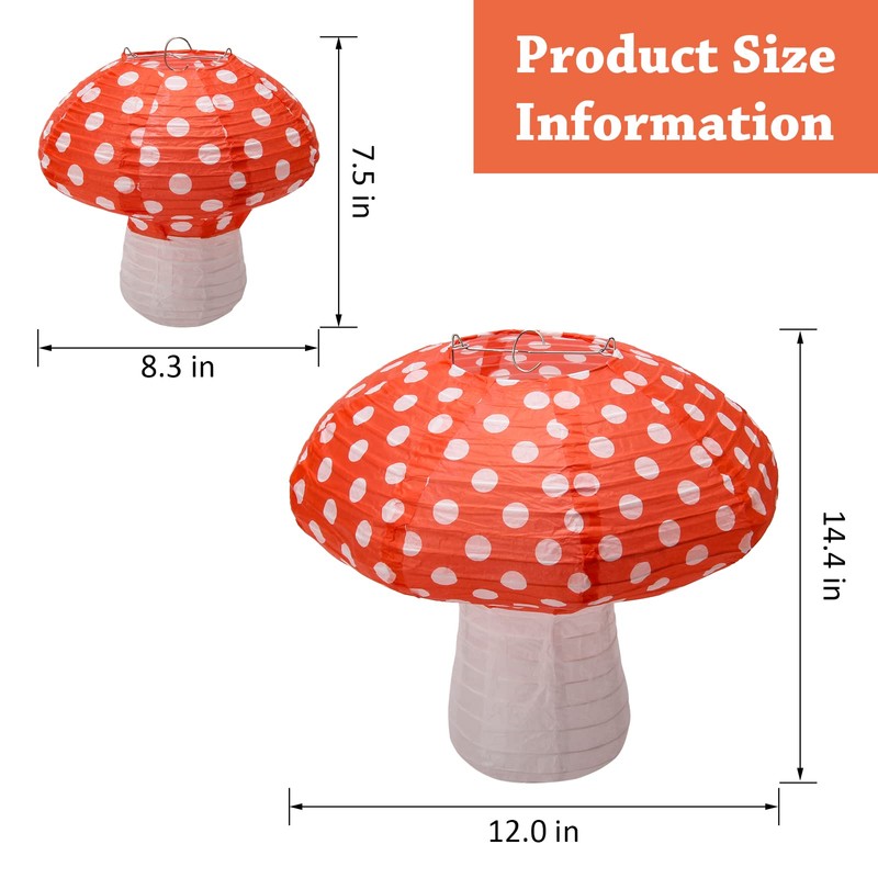 - [ What You Will Get ]: The mushroom shaped paper lanterns set includes 4 mushroom lanterns of different sizes, 8 inches and 12 inches, 8 pcs in total. Different sizes can meet your different decorative needs.
