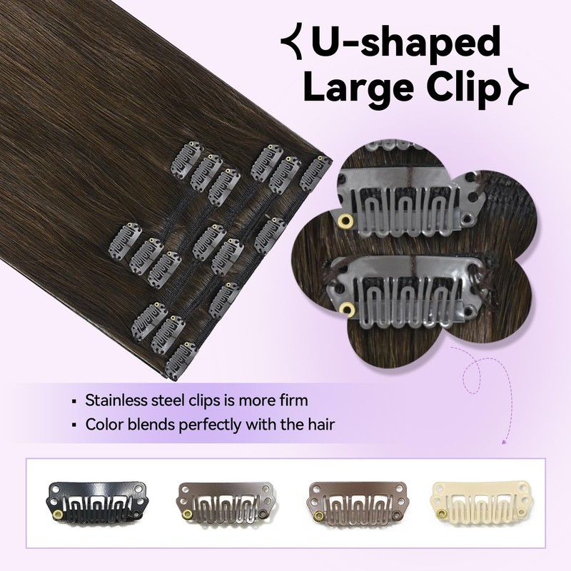 - 【Comfortable & Easy to Wear】-- Seamless clip in hair extensions real human hair has 16 U-shaped metal cards sewn on it. The clip is sewn stably and covered with a layer of soft rubber to effectively reduce hair pulling. The color of the clips is closest to the hair and less visible. You can easily put on or take off your hair extensions in 5 minutes. ❤️ If the clip is damaged upon receipt or during use, we provide free lifetime replacement.