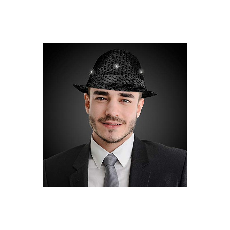 - FEDORA HAT FOR MEN AND WOMEN You'll look hot when you put on our LED Black Sequin Fedora. It’s not enough that this Black party hat sparkles brilliantly in the light. We’ve also added 6 LEDs that have three light modes: fast flash, slow flash, or steady. You’ll become a dazzling human light show. Our Black led fedora hat will make you the star at any event. Also great for neon nightlife parties, Chinese New Year, New Year’s eve celebrations, Black themed parties, and Mardi Gras.
