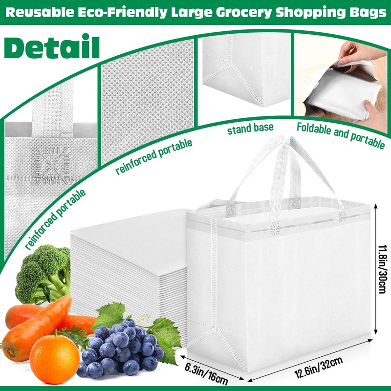 - Spacious and Versatile: with dimensions of x about 12.6 x 11.8 x 6.3 inches/ 32 x 30 x 16 cm, these reusable grocery bags offer ample space for whatever you need to carry, be it groceries, clothes, books, gardening supplies or crafts; Their solid design makes them suitable for both home and commercial usage, companies or events like weddings, birthdays or parties