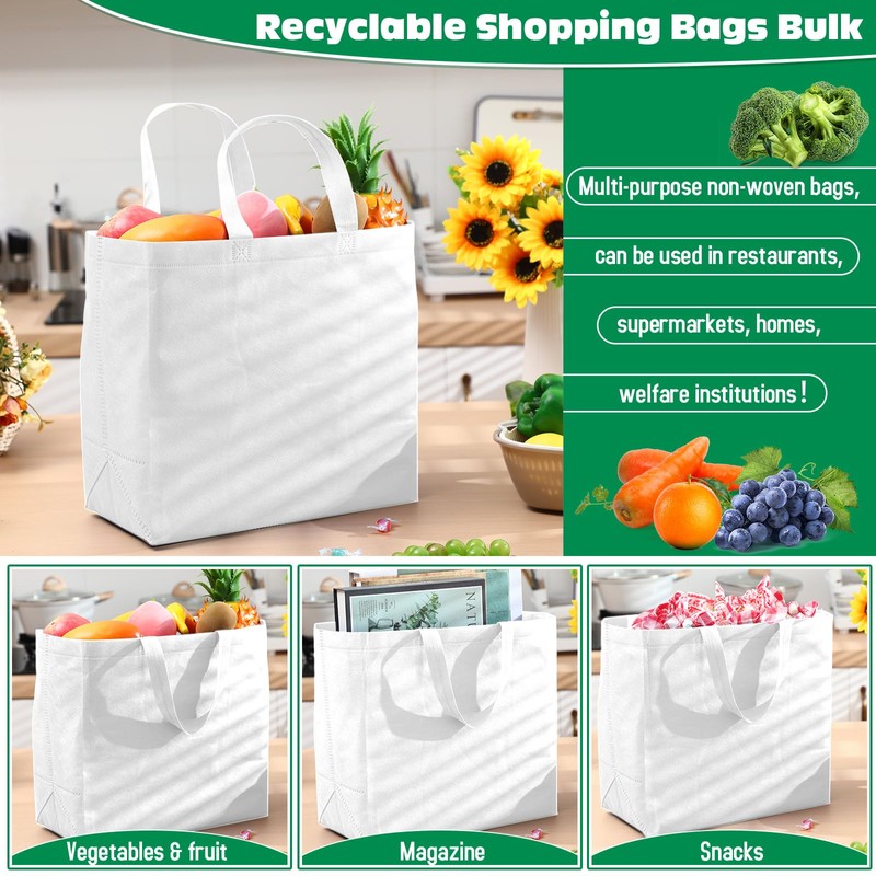 - Quality Material: our reliable, long lasting reusable bags with handles are made of non woven fabric that won't tear easily even with heavy loads; The material can be washed and reused, reducing your personal waste