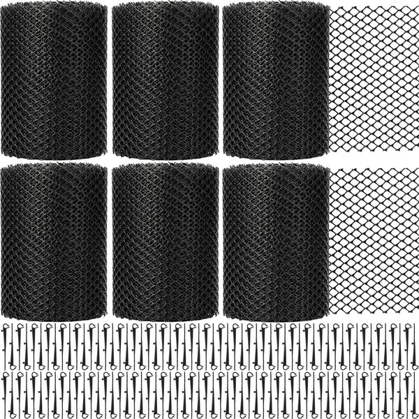 Windyun Gutter Guards Roll Black Plastic Guards Mesh Downspout Pipe Gutter Cover Filter Gutter Protection Netting with Clip Fixed Hooks Preventing from Twigs Debris Leaves Clogged (6 Set,5'' X 20')