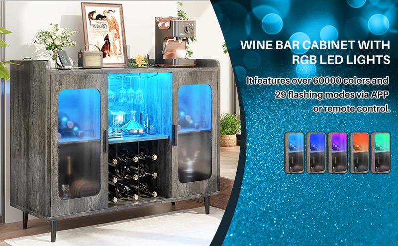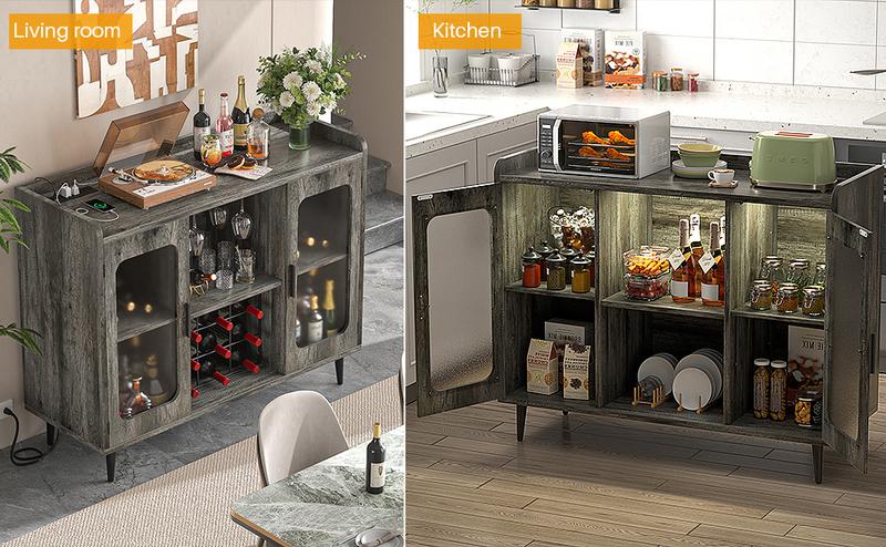 - Feature: with LED Light,with Power Outlet,for Kitchen,with Storage Shelf,Wine Bar Cabinet,Liquor Cabinet Bar,with Glass Holder,Home Coffee Bar Cabinet,Buffet Sideboard,for Dining Room