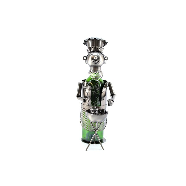 WINE BODIES BBQ Barbecue Chef Metal Wine Bottle Holder Character, Charcoal
