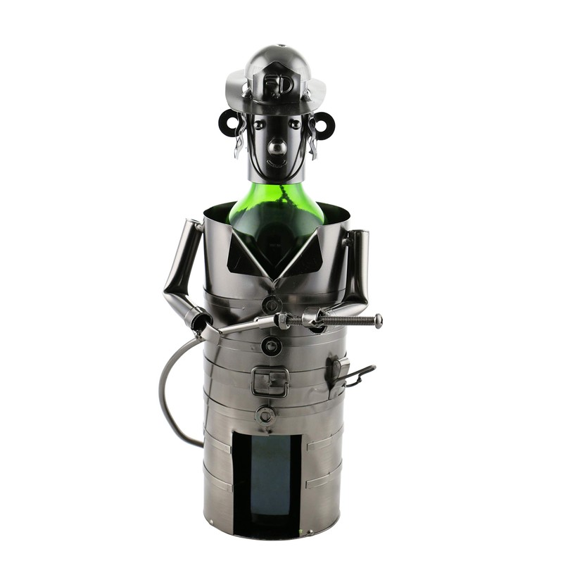 Wine Bodies Fireman Firefighter Metal Wine Bottle Holder, Charcoal