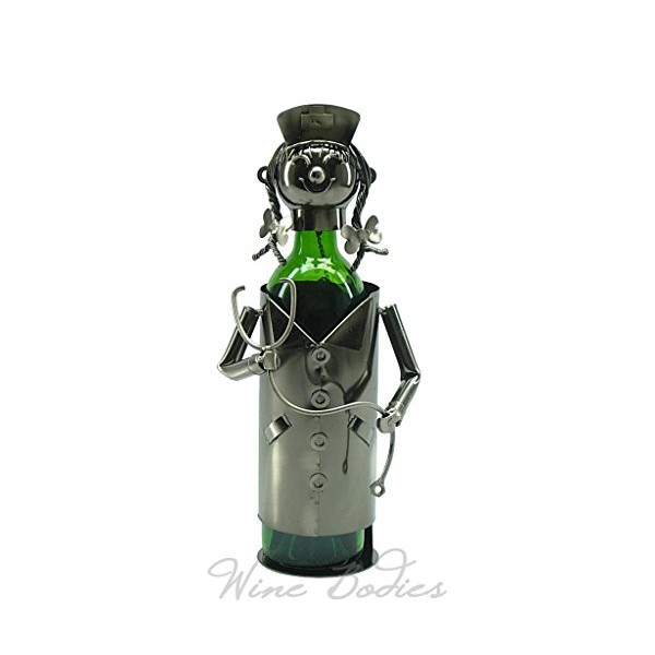 WINE BODIES nice nurse Metal Wine Bottle Holder, Charcoal