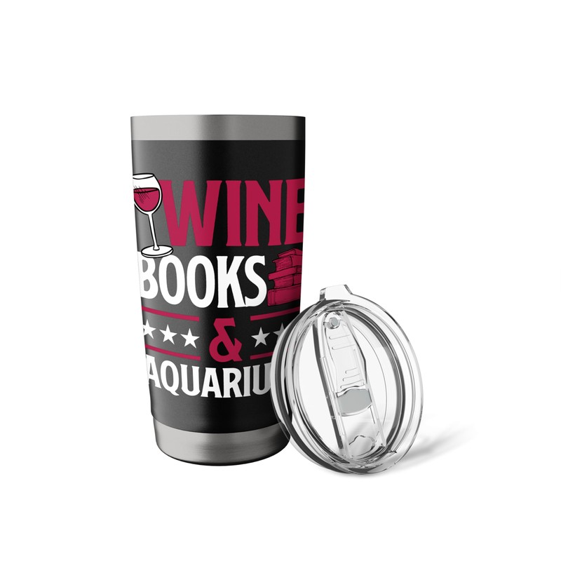 Wine Books And Aquariums Red Wine Loving Book Reading Stainless Steel Insulated Tumbler