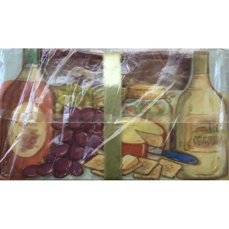 - Cardboard holder pictures wine bottles, grapes, cheeses, wine glasses and other fruit