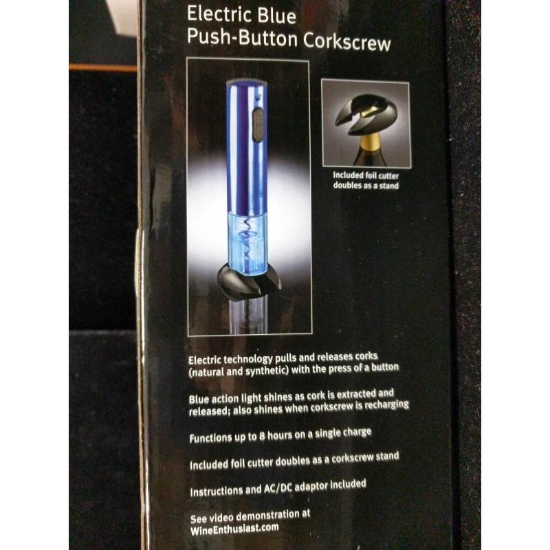 Wine Enthusiast Stainless Steel Electric Blue Push-Button Corkscrew A4-2