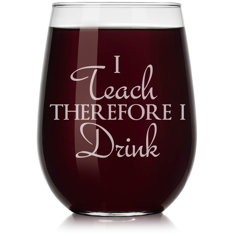 Wine Glass I Teach Therefore I Drink Teacher (Stemless, 17oz)