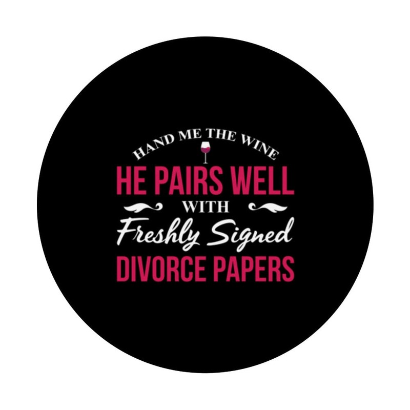 - Hand Me The Wine He Pairs Well With Freshly Signed Divorce Papers. If you are planning your divorce, this divorcing party design is perfect to celebrate your divorcement with family and friends.