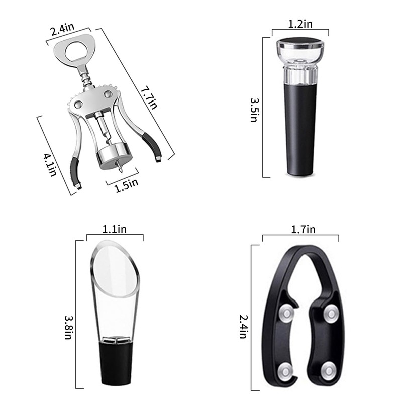 - 【4-in-1 Kit】: Thoughtfully includes an wine opener, aerating pourer, vacuum stoppers, and a foil cutter
