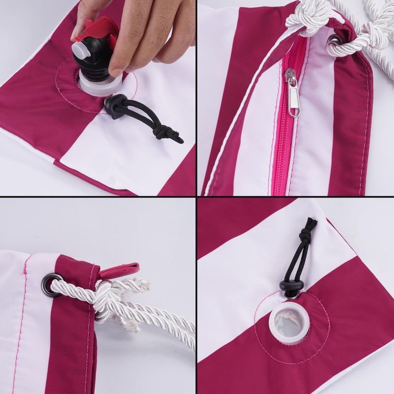 • Unique Design: Use your beach accessories with our wine tote, boasting a detachable beverage pouch for spillless serving and accommodating space for two wine bottles or 1.5 liters of your preferred beverage. The chic and unique design is sure to turn heads.