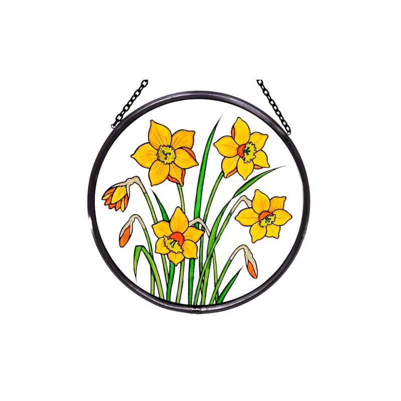 Winged Heart Decorative Hand Printed Stained Glass Window Sun Catcher/Roundel in a Daffodils Design.