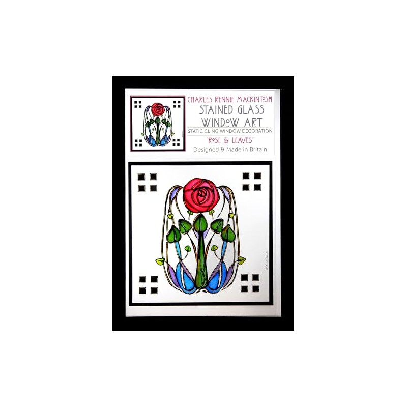 - Winged Heart presented by Celtic Glass Designs Static Window Cling in a Mackintosh Rose and Leaves Design