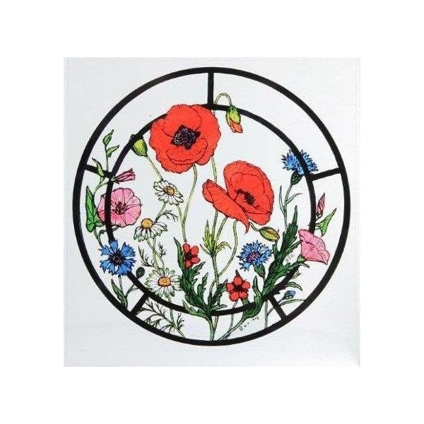 Static Window Cling in a Cornfield Flowers Design The Cornfield Flowers design is a beautifully hand painted, glass window decoration. Being self-cling they are easy to apply. Just peel off the backing sheet and smooth on to a clean window. Unlike window stickers, static clings are fully repositionable and leave no residue. Colourful and decorative in their own right, they are useful for placing on internal sliding doors and windows, helping to prevent people (and birds flying outside) from bumping into the glass. Ideal as delightful and inexpensive gifts.