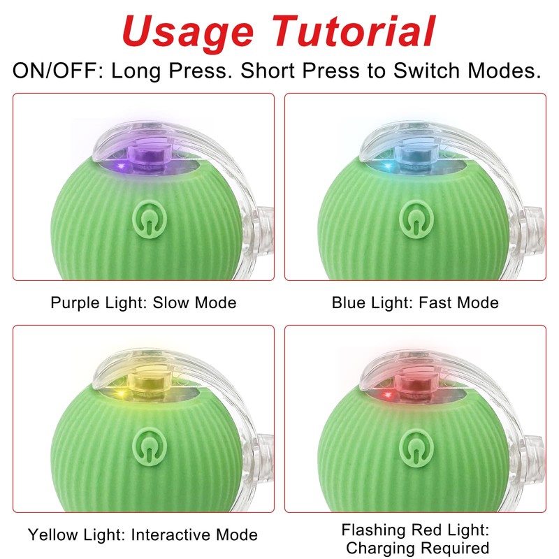 - Energy-saving automatic sleep mode: the ball switches to sleep mode after 5 minutes of inactivity and turns off automatically after 30 minutes. When the pet touches it again, the intelligent ball is restarted to play with the pet.