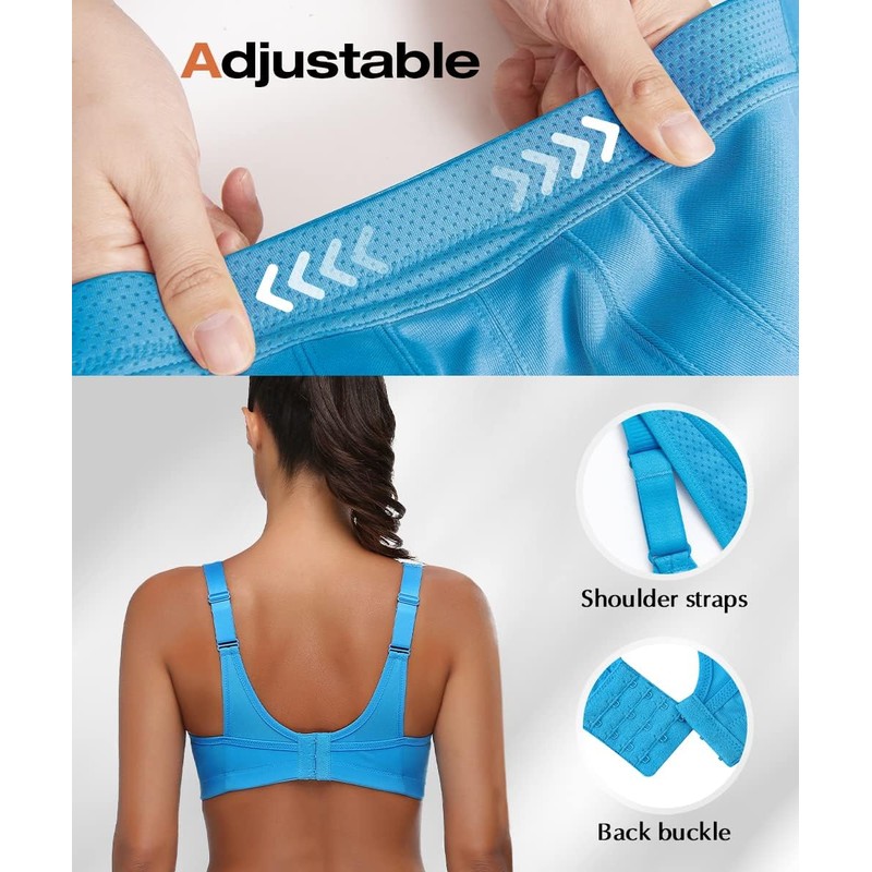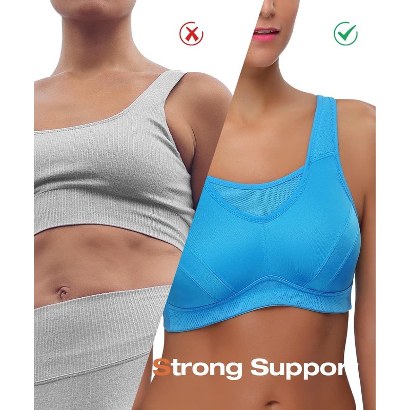 WingsLove High Impact Sports Bras for Women Full Coverage Wirefree Non Padded Workout Bras Full Support Plus Size Bra(Blue,40C)