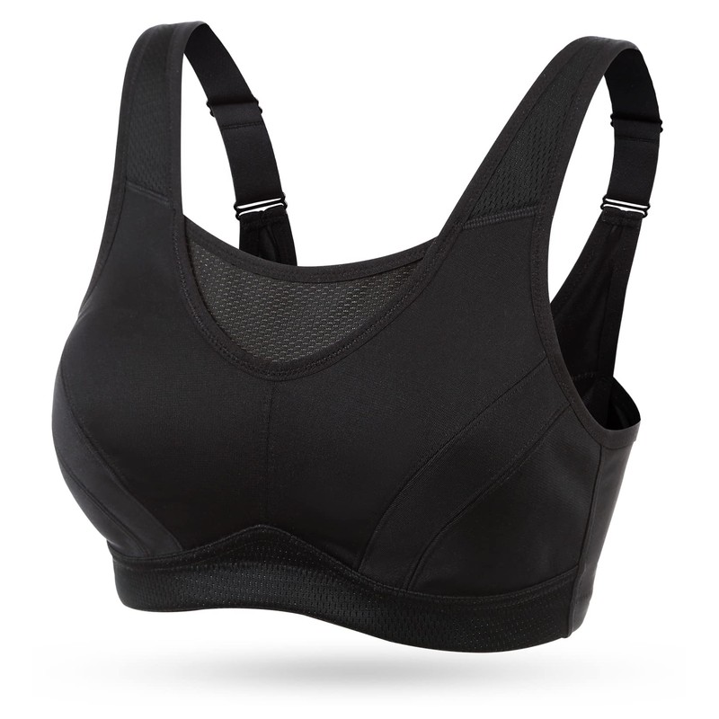 Wingslove Women's Sports Bra without Underwire, Non-Padded, High Impact Bustier, Support, Jogging Bra, black