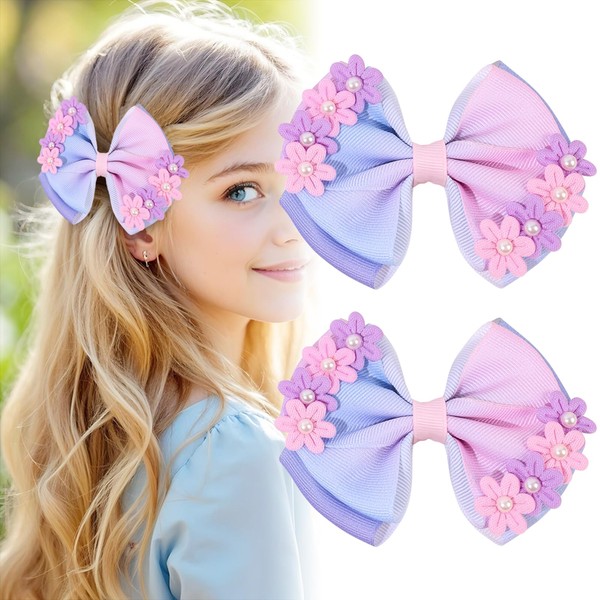 Winmany 2PCS Toddler Girl Hair Clips Baby Cute Flower Bows Hairpins Alligator Clips Hair Accessories for Girls (Purple)