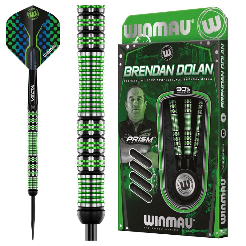WINMAU Brendan Dolan 23 Gram Professional Tungsten Darts Set with Flights and Stems (Shafts)