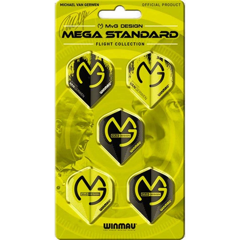 Winmau Mega Standard Pro Player Michael Van Gerwen Collection Dart Flights, 75 Micron Extra Strong (5 Sets)