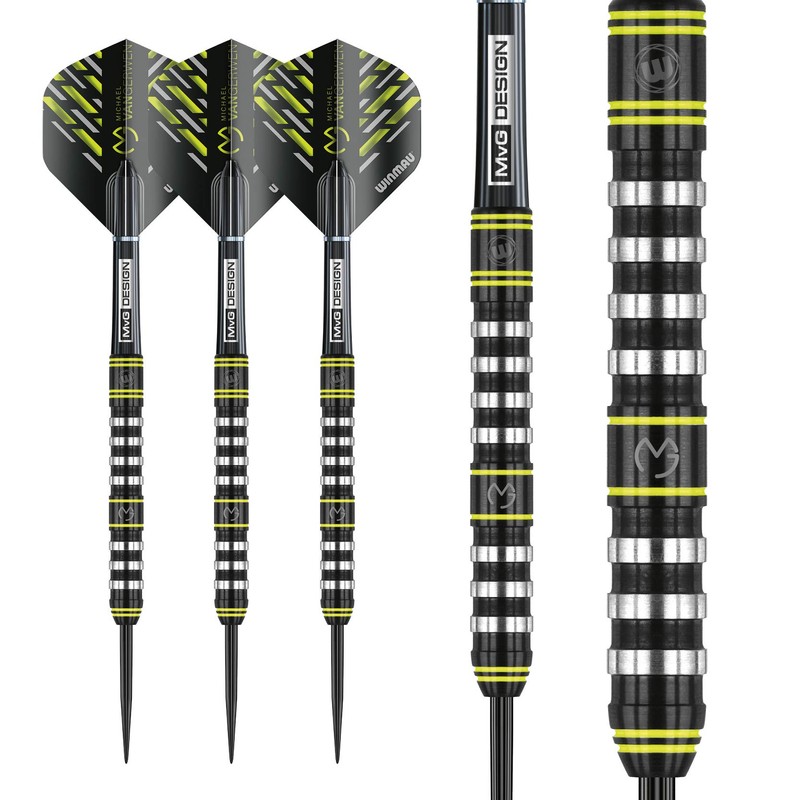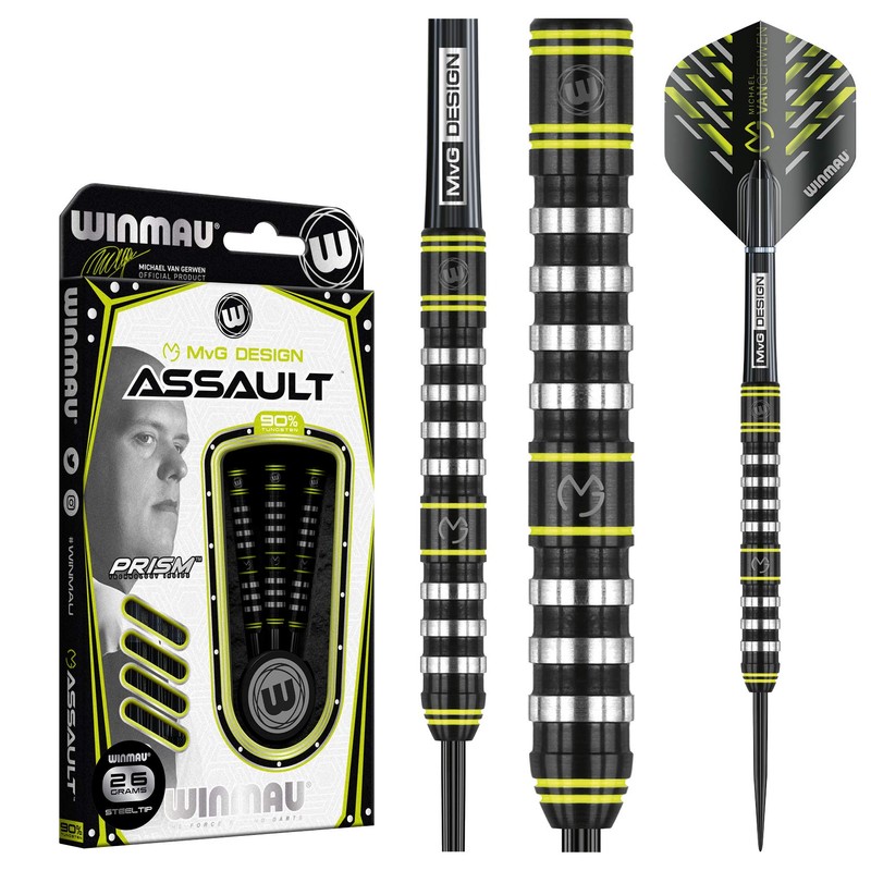 WINMAU Michael van Gerwen MvG Assault Tungsten Steeltip Darts Set 26 Gram with Prism Flights and Nylon Shafts (Stems)