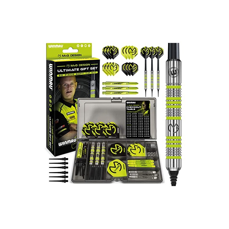 Winmau Michael Van Gerwen MvG Softip Gift Set - 50 Piece Darts Set with 4 Sets of Shafts, 4 Sets of Flights Plus Accessories