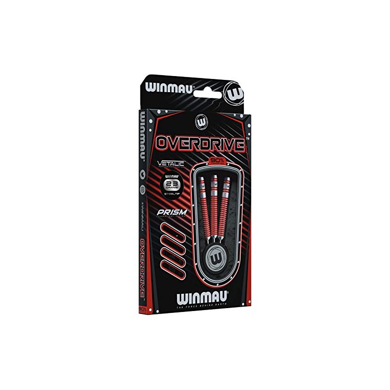 Winmau Overdrive Tungsten Steeltip Darts Set 23g with Prism Flights and Shafts (Stems)