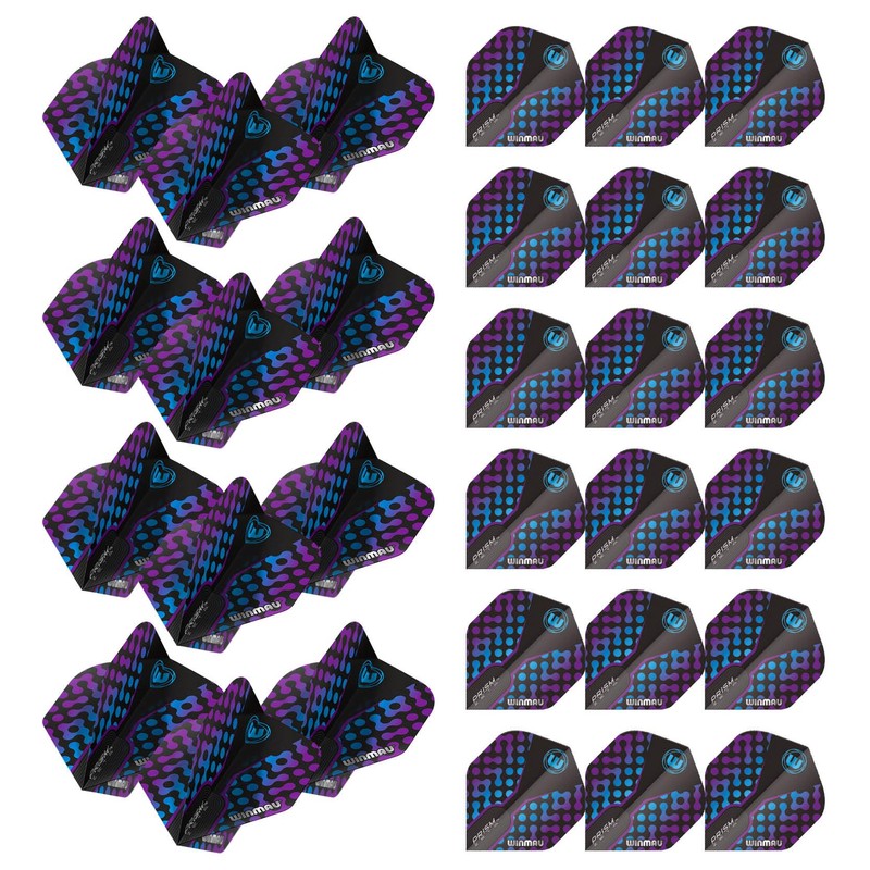WINMAU Prism Zeta Pattern Design Extra Thick Dart Flights - 10 sets per pack (30 dart flights in total) (Black, Purple & Blue)