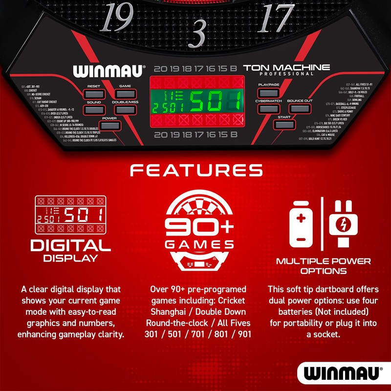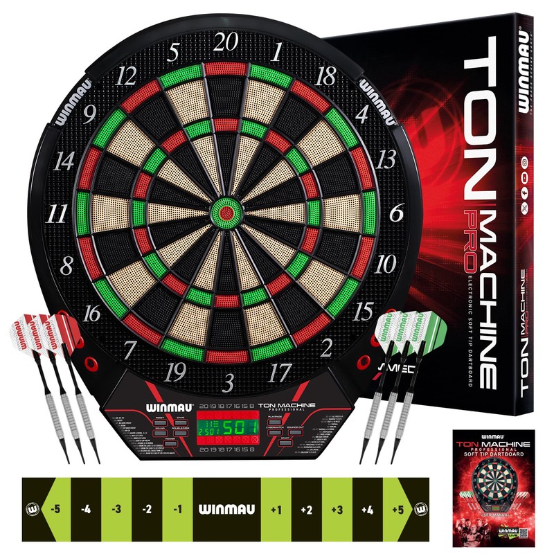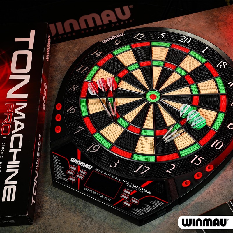 Winmau Ton Machine Electronic Dart Board - Soft Tip Dartboard for Adults, Dart Board Set with 90+ Games & Digital Scoreboard for 8 Players - 2 Sets of Soft Tip Darts, Throwing Line & Plastic Tips