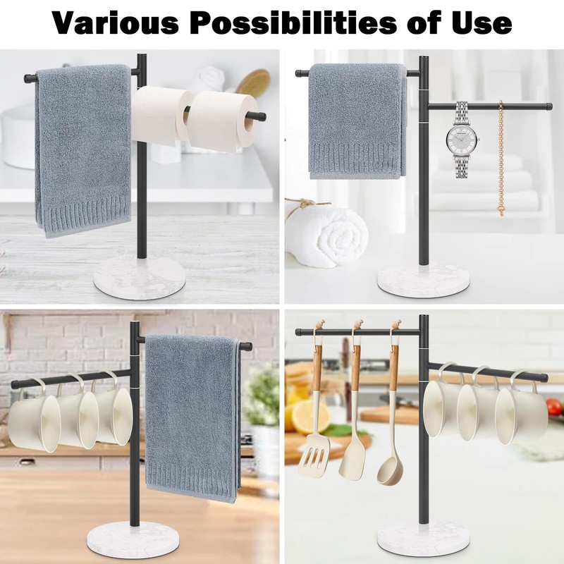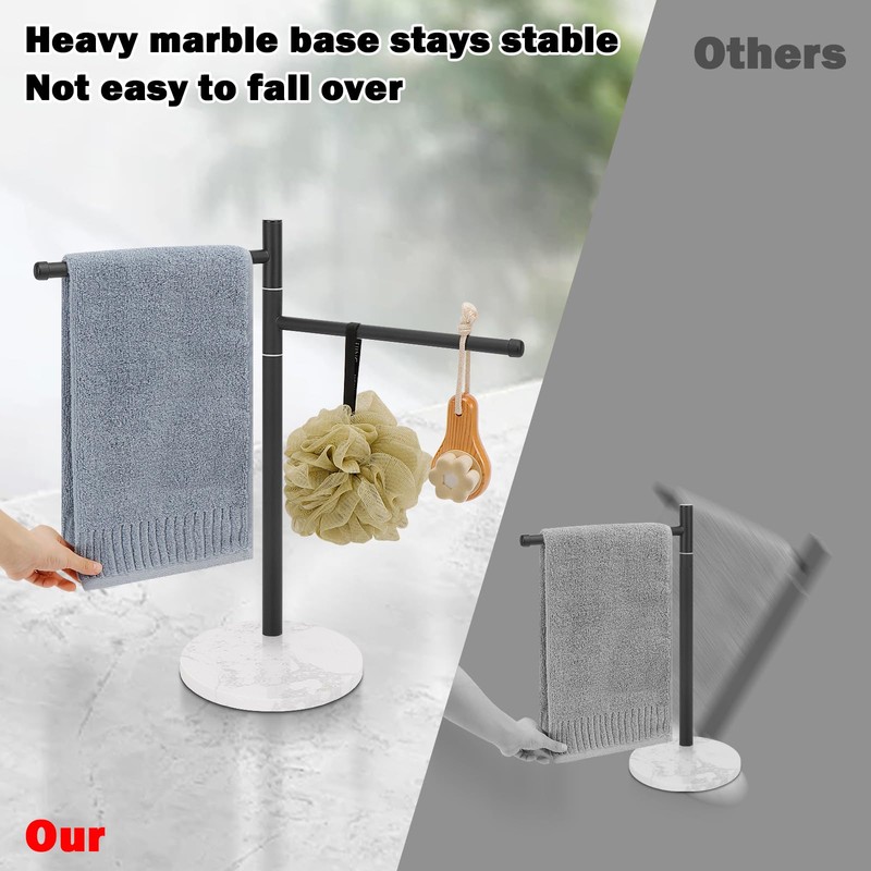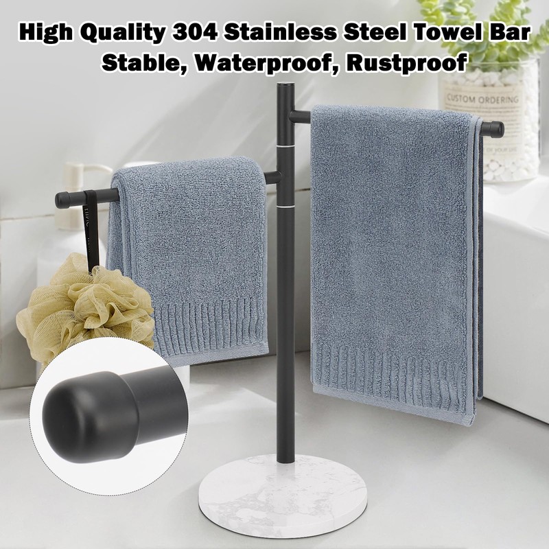 Winmien Standing Hand Towel Holder, Hand Towel Stand with Marble Base, 304 Stainless Steel Towel Rack with 2 Swivel Arm, Countertop Stand Towel Ring Towel Bar for Bathroom (Matte Black, Round)