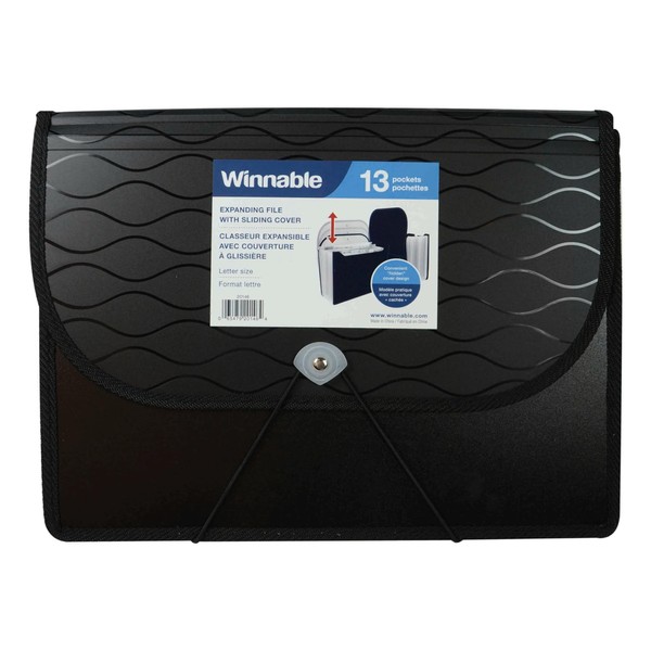 Winnable Expanding File with Sliding Cover, Letter Size, 13 Pockets, Black
