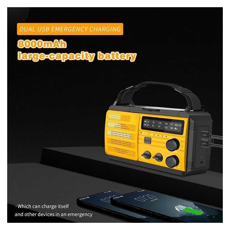 - Eingebauter wiederaufladbarer Lithium-Polymer-Akku mit hoher Kapazität von 8000 mAh: Dieses Notfallradio ist mit einem wiederaufladbaren Lithium-Polymer-Akku mit hoher Kapazität von 8000 mAh ausgestattet, der dank des mitgelieferten Typ-C-Kabels effektiv aufgeladen werden kann. Es kann auch als tragbare Powerbank zum Aufladen von mehr als zwei Handys dienen und eine Notbeleuchtung bereitstellen, was Ihnen im Notfall Sicherheit bietet.
