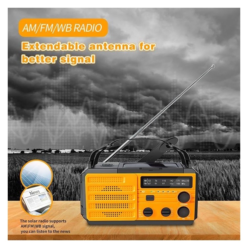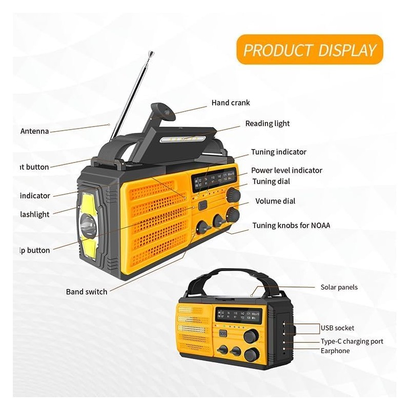 - Survivalradio mit Kompass und SOS-Alarm: Wenn Sie in Gefahr sind und sich nicht bewegen können und Ihr Notrufen zu schwach ist, drücken Sie die SOS-Taste dieses Solarbetriebenes Notfallradio mit Handkurbel. Ein SOS-Alarm und eine Taschenlampe ertönen, um Notfälle anzulocken. An der Oberseite des Produkts ist auch ein Kompass integriert, der Ihnen beim Navigieren hilft. Dies erhöht Ihre Chancen, im Notfall gerettet zu werden.