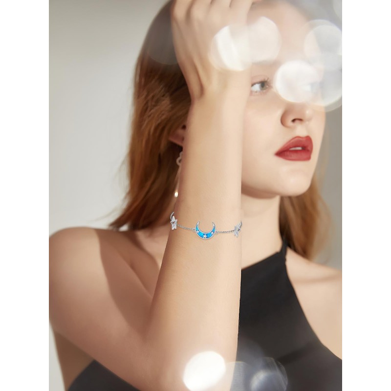 WINNICACA 925 Sterling Silver Blue Opal Moon and Stars Bracelet for Women, Birthday Gift for Women,Ladies Jewellery Gift (Moon)