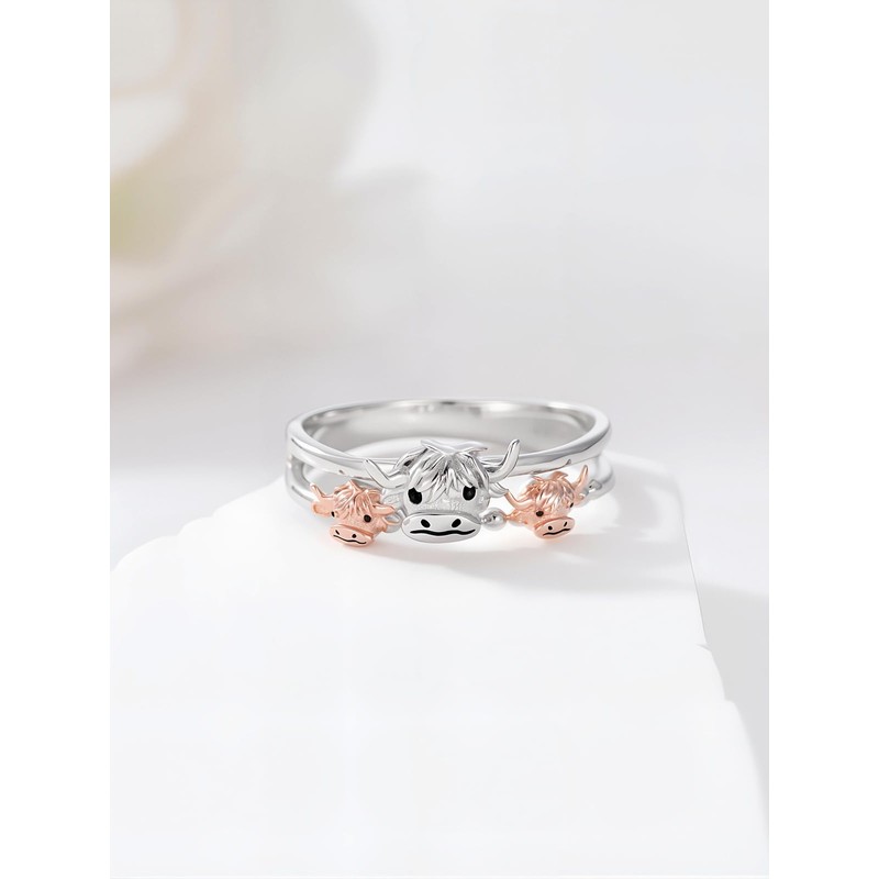 WINNICACA Sterling Silver Animal Rings Rose Gold Otter Highland Cow Fox Rings Animal Jewelry Gifts for Women Teens Birthday, White Gold, No Gemstone