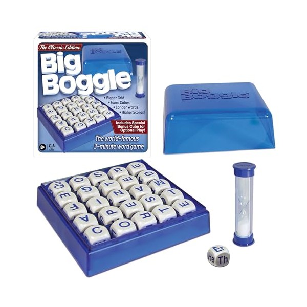 Big Boggle with 5x5 Grid and 25 Letter Cubes by Winning Moves Games USA, Thought Provoking Word Game Bigger Than the Original, for 2 or More Players, Ages 8+ (1147)