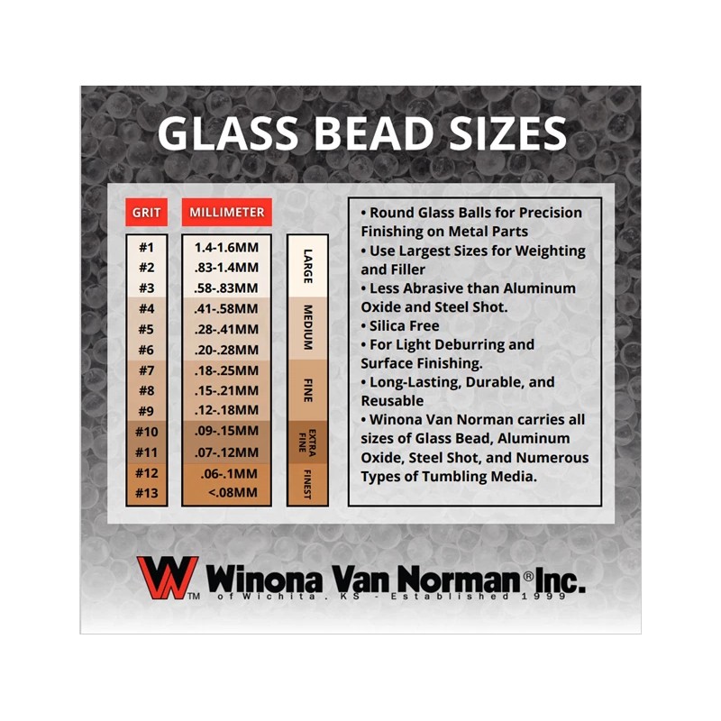 Winona Van Norman Sand-Blasting Media - Glass Bead #1 - Extra Large Size - 12-14 Mesh - 20lbs