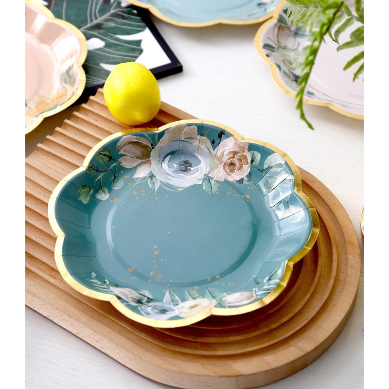 Floral Paper Plates - 48 PK - Floral Plates 6 Designs Assorted Floral Party Plates Floral Disposable Plates for Tea Party Baby Shower Brial Shower Birthday Wedding