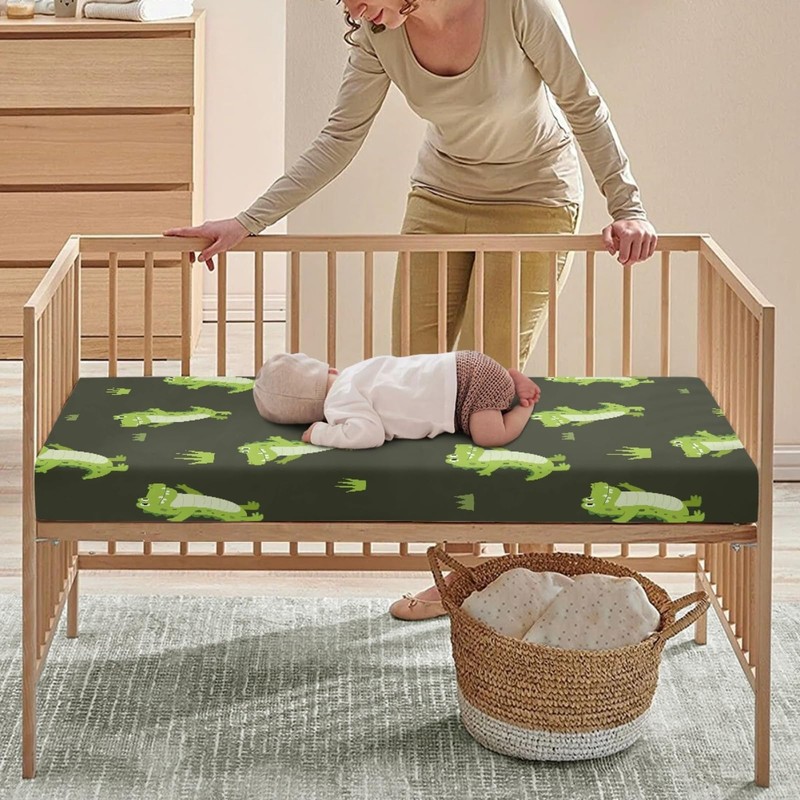 - Material Soft:Made from soft polyester, our happiness green alligator crib sheet are gentle on your baby's delicate skin.The breathable fabric ensures optimal airflow, creating a soothing sleep environment for restful nights