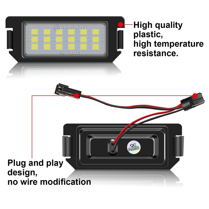 - Hohe Helligkeit - 18 3528 SMD-LEDs sorgen für perfektes weißes Xenon-Licht bei geringerem Stromverbrauch. Das spezielle Design der klaren Frontlinse sorgt für eine breite Lichtverteilung und hebt Ihre Nummernschilder deutlich hervor, um die Sicherheit und Sichtbarkeit bei Nacht zu erhöhen.