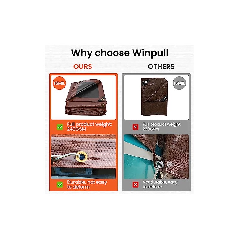 - 100% VIRGIN POLYETHYLENE & THICKENED LAYER: Crafted from high quality polyethylene with thickened pvc waterproof layer, Winpull tarp provides exceptional strength and durability to keep your items safe and dry, it is built to last