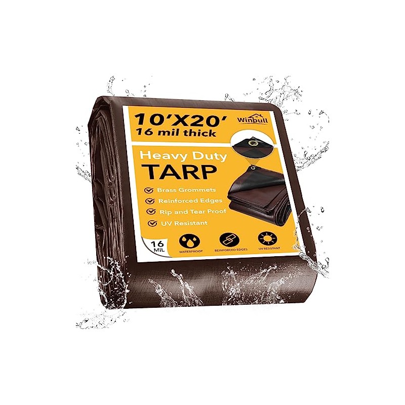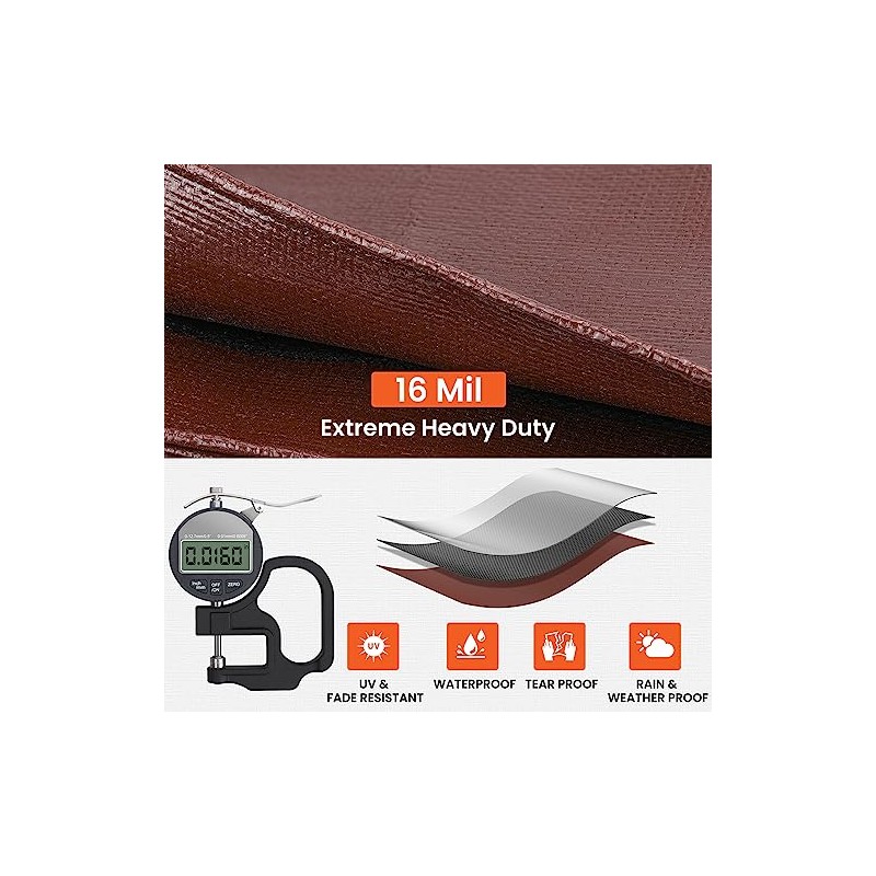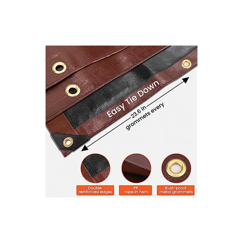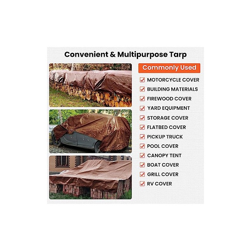- UV RESISTANT, WATERPROOF AND WEATHERPROOF: You can use the ultra-thick tarp throughout the entire year, whether it's windy, raining, snowing or raining. The premium poly tarp can protect your belongings against the forces of nature during heavy rain and snow storms, this brown tarp will keep your stuff as undamaged and dry as possible