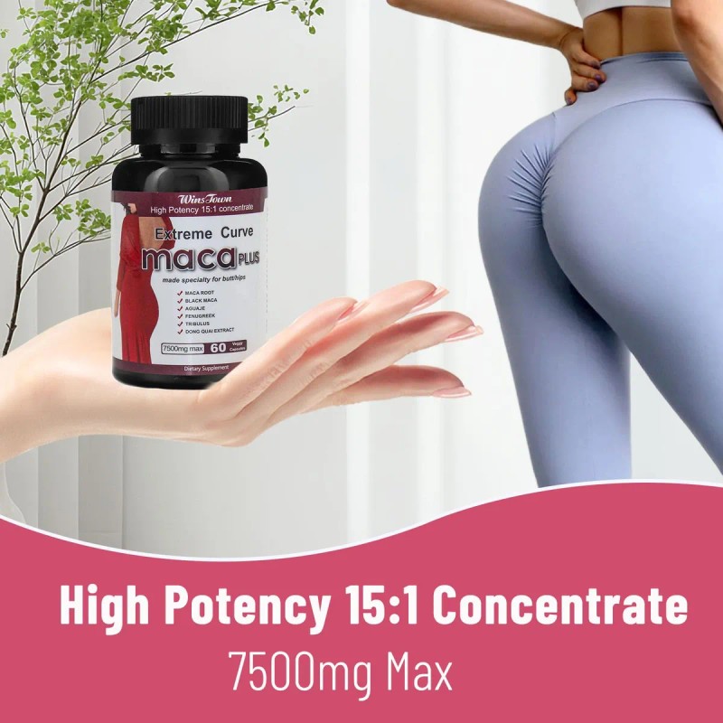 - CÁPSULAS MACA PLUS - Wins Town maca plus para mujeres, fórmula especial para crecimiento de glúteos, mezcla potente de hierbas, raíz de maca, tribulus terrestris y extracto de dong quai para conseguir figura curvilínea y silueta femenina
