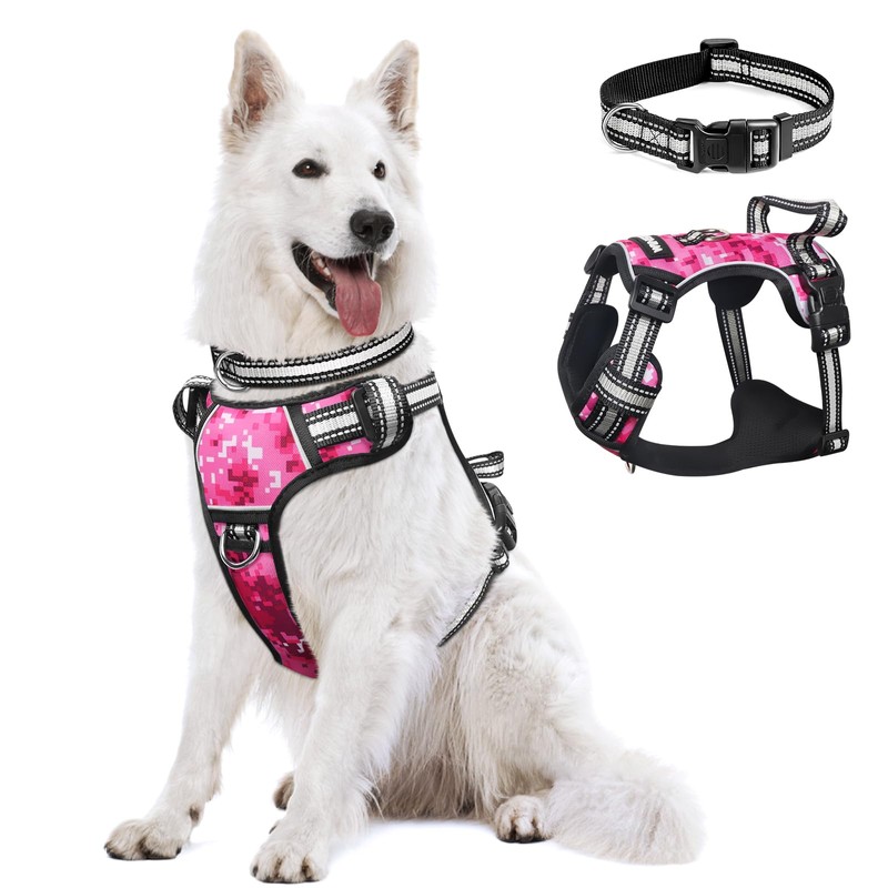 WINSEE Dog Harness No Pull, Pet Harnesses with Dog Collar, Adjustable Reflective Oxford Outdoor Vest, Front/Back Leash Clips for Small, Medium, Large, Extra Large Dogs, Easy Control Handle for Walking