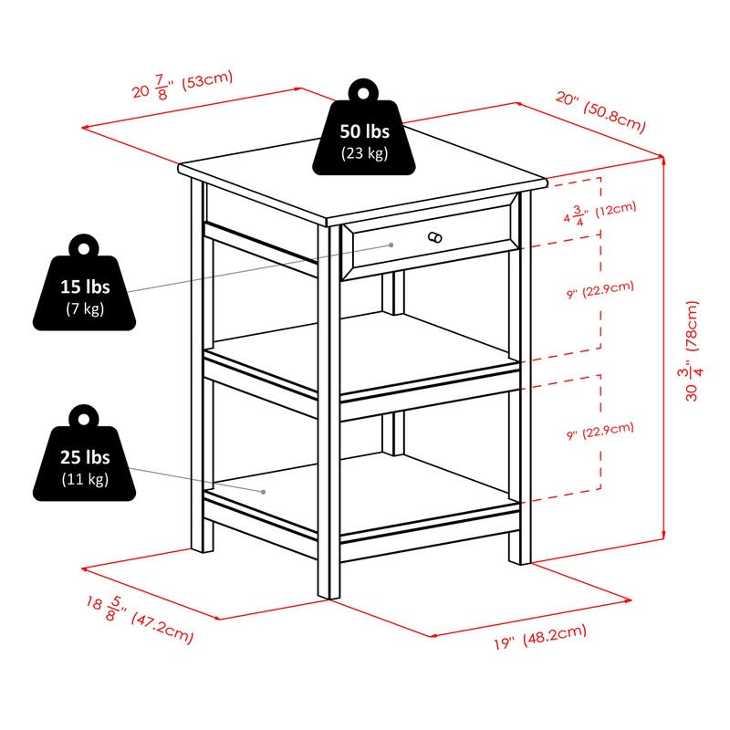 - Shelf dimensions: 18.8"W x 18.5"D, both with a clearance of 9"H